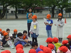 1年生に自己紹介をしたり、ゲームのルールを説明して、
