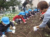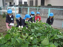 「かぼちゃみたい!」「こっちは赤ちゃんのおいもだよ。」と、次から次へと出てくるおいもに歓声を上げながら、ほり残しが無いように最後まで丁寧に掘りました。