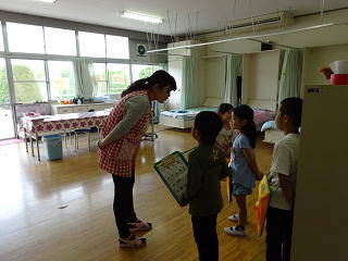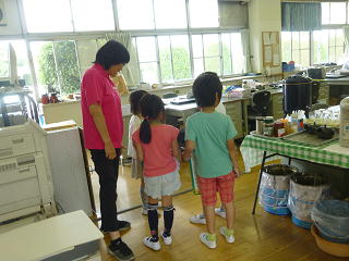 今日は1年生みんなで学校探検をしました。