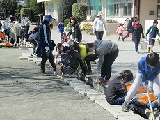 校庭側溝清掃