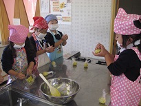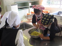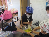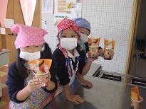 食事の時には、「甘くておいしい!!」「作るのたのしかったな。」と口々に話し、大満足の子どもたちでした。